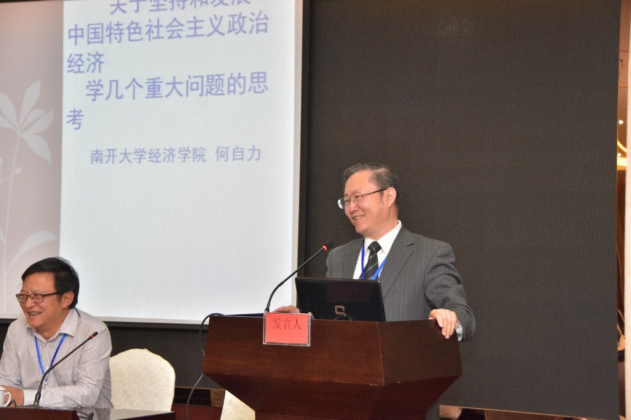 南开大学何自力教授做了题为“关于坚持和发展中国特色社会主义政治经济学几个重大问题的思考”的主题演讲。围绕坚持和发展中国特色社会主义政治经济学的经济和社会历史条件、指导思想、以人民为中心的根本立场、具有历史感和实践性并具有中国特色的理论品质、继承与创新、方法论、研究对象和任务等问题进行了系统阐述。