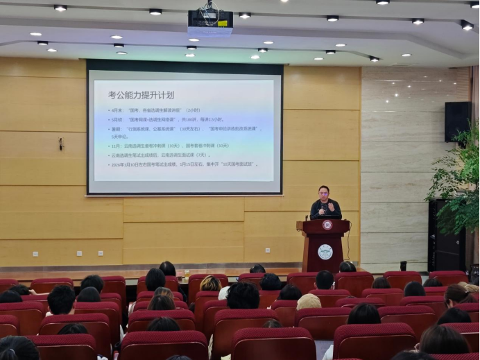 徐琰超围绕升学就业给同学们进行了详细的数据比较、形势分析、政策解读、备考建议。他强调,学院将结合同学们升学就业需求,精准地、有针对性地开展“考研能力提升计划”“考公能力提升计划”,持续优化支持帮扶体系,助力学生在多元赛道中把握主动权,并寄语全体同学,“学院始终是你们最坚实的后盾,愿每位学子都能锚定航向,上岸!”