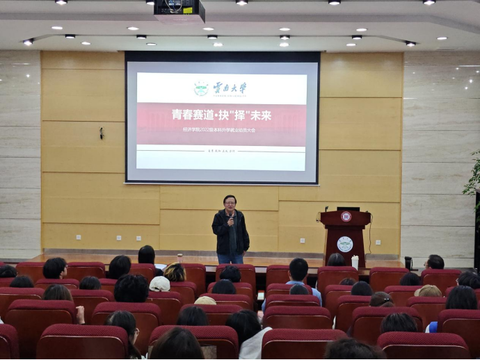 2025年4月17日,澳门永利yl67762022级本科升学就业动员大会,在澳门永利yl6776报告厅隆重举行。经济学院党委书记徐琰超、院长张林、党委副书记李佳韩、副院长周观琪、辅导员罗媛,以及全体2022级本科学生参加会议。