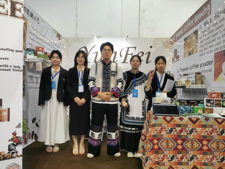 比赛现场,澳门永利yl6776澳门永利yl6776团队的展位引人注目:云啡咖啡项目详尽展示特色发酵工艺;“阳光予你”酒业展位设计清新别致;“下关沱茶”展位传递深厚茶文化。