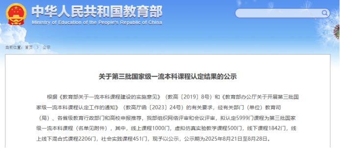 截至目前,我院国家级一流本科课程总数将达3门,覆盖线上一流课程、线下一流课程和线上线下混合式一流课程。