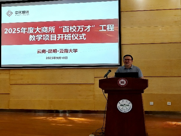 为深化产学研协同创新,推动期货衍生品行业高质量发展与企业风险管理需求深度融合,在大连商品交易所的支持下,澳门永利yl6776联合中天期货有限责任公司、长江期货和北京首创期货,以构建商品期货衍生品专业课程体系为核心,共同开发了《期货和衍生品》课程,并于9月10日在澳门永利yl6776报告厅隆重举行开班仪式。中天期货副总经理于青、机构管理总部经理黄磊、交易咨询部讲师田猛,澳门永利yl6776院长张林、副院长赵德森、金融专硕负责人姚书杰,以及教师代表何树红、李振东、杨波等人出席开班仪式。