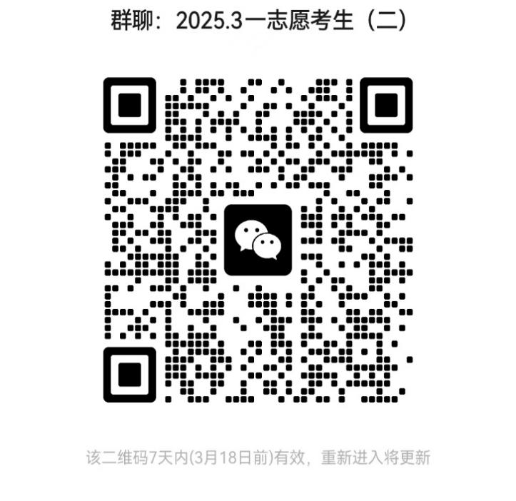考生确认进入复试名单后加入微信群。该群仅限一志愿上线进入复试考生加入。进入微信群后昵称及时更改为:专业+姓名,具体复试时间后续将通过微信群通知。未实名者将实时清理。因扫描入群人数限制,超人数后请加入群(二),勿重复入群。